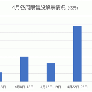 本月解禁峰值在第四周(4月22日至26日),多达1360.72亿元,本月占比约44%。