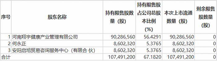 此次解禁股东共三位,除了控股股东和实控人已承诺不减持外,还有安阳启旭贸易咨询服务中心(有限合伙)有860.23万股要解禁,占总股本比例的5.38%,约合市值3.84亿元,其若要减持需提前披露减持计划。