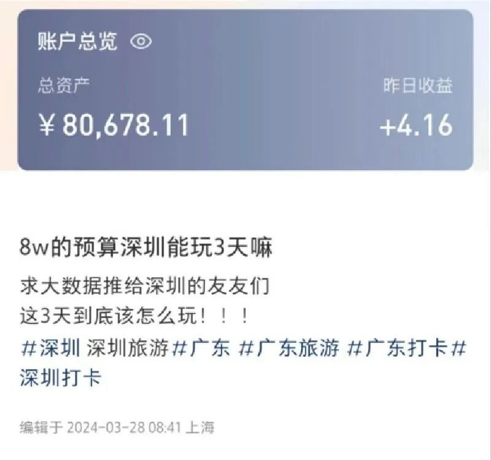 ● 8万元能在深圳玩3天吗?网友热议!详情>>