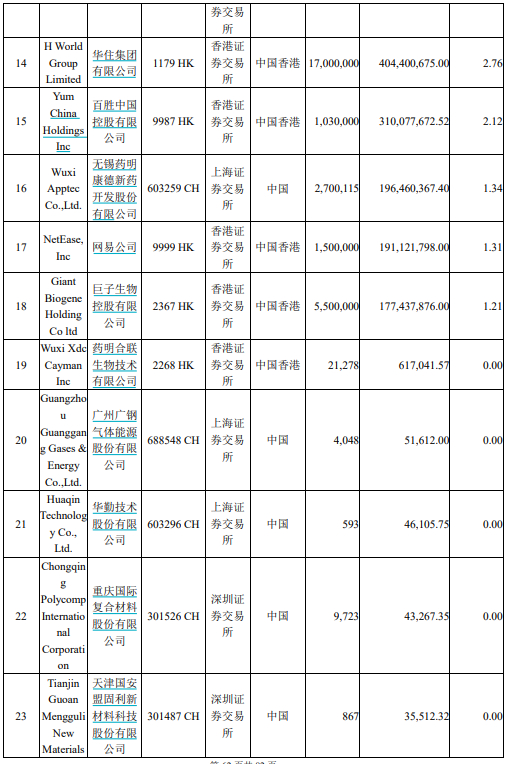 2023年期末按公允价值占基金资产净值比例大小排序的所有股票投资明细top50