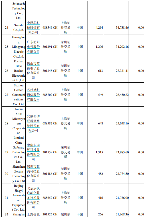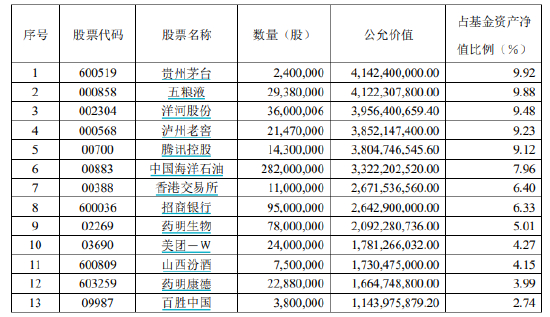 期末按公允价值占基金资产净值比例大小排序的所有权益投资明细TOP50