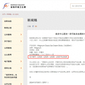 据英国食品标准局官网公布的信息显示,涉事梦龙冰淇淋的规格为3x100ml,保质期至2025年11月,批号分别为L3324、L3325、L3326、L3327和L3328。