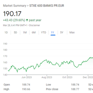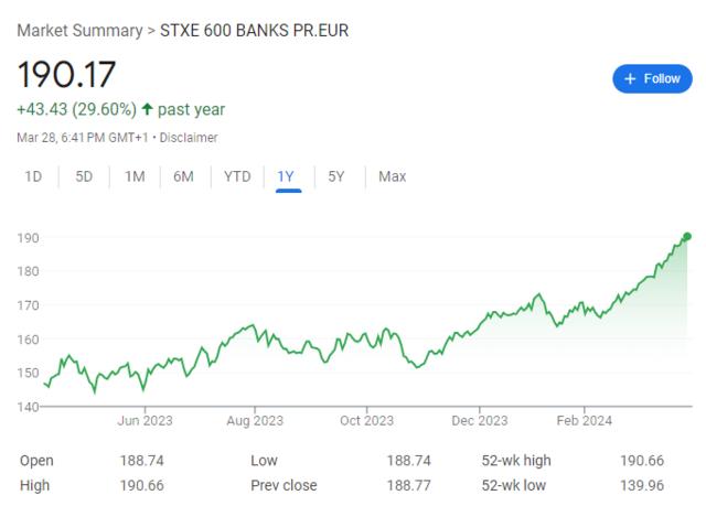 当地时间上周四(3月28日),欧洲斯托克600银行指数创下历史新高,该指数一年来已实现了34%的增长。