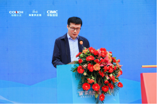 海螺海慧供应链公司总经理宋登科在致辞中表示:“我们将围绕供应链应用与创新目标, 携手中集强冠等行业伙伴,打造一个集“新能源车辆、充换电站、运输招标”为一体的全生态、全链条赋能和增值平台,建设绿色、环保、高效的运输体系,进一步推动了物流行业的高质量发展。”