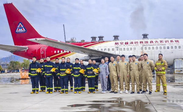 此次培训,还通过近距离观察飞机外部着火点和驾驶舱、洗手间、厨房间、客舱内部着火点,开展多种情况机上灭火的训练,真火温度带给学员更加真实的、紧迫的环境体验,现场烟雾增强学员的情景感知。利用飞机客舱模拟器营造实战环境和氛围,大大提升机组成员的情景意识和综合实战能力。