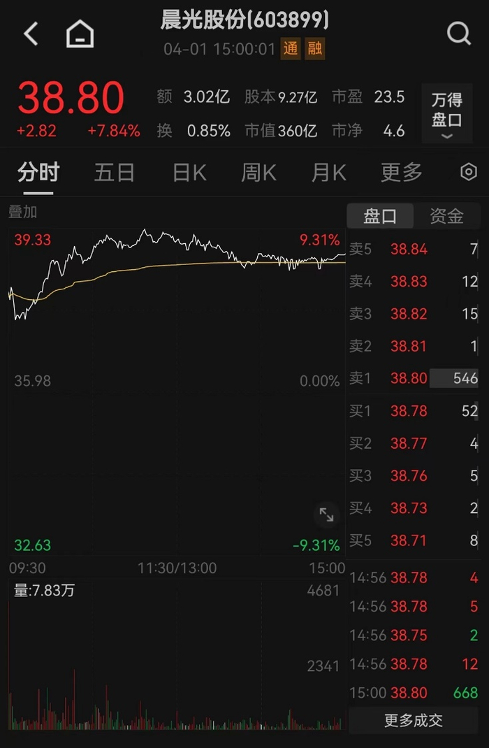 晨光股份大幅拉升涨超7%,收报38.8元/股。公司上周五盘后公告,公司2023年实现营业收入233.51亿元,同比增长16.78%,归母净利润为15.27亿元,同比增长19.05%。