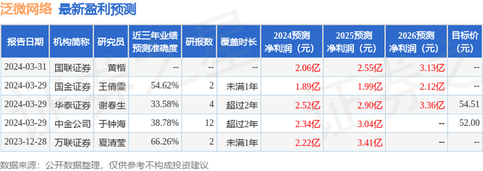 最新盈利预测明细如下:
