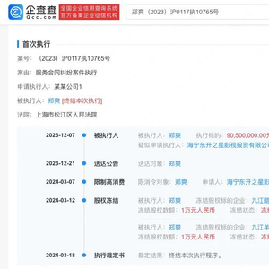 记者从文书上看到,此次执行关系浙江海宁东开之星影视投资有限公司与郑爽服务合同纠纷一案。生效法律文书确定:郑爽返还服务费3,050万元,赔偿公司经济损失6,000万元。