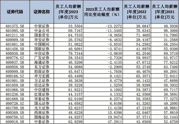 2023年券商人均薪酬普降