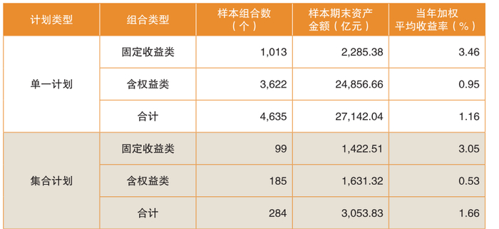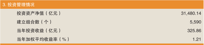 在集合计划中,含权益类的组合期末资产金额约为1631亿元,加权平均收益率0.53%;固定收益类组合期末资产金额约为1423亿元,加权平均收益率3.05%。