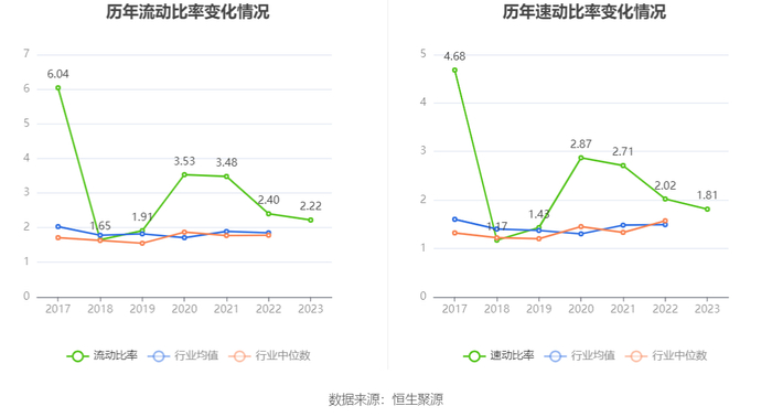 2023年,公司流动比率为2.22,速动比率为1.81。