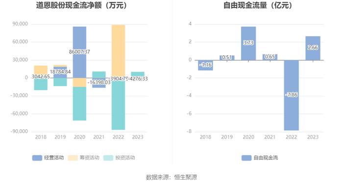 进一步统计发现,2023年公司自由现金流为2.66亿元,上年同期为-7.86亿元。