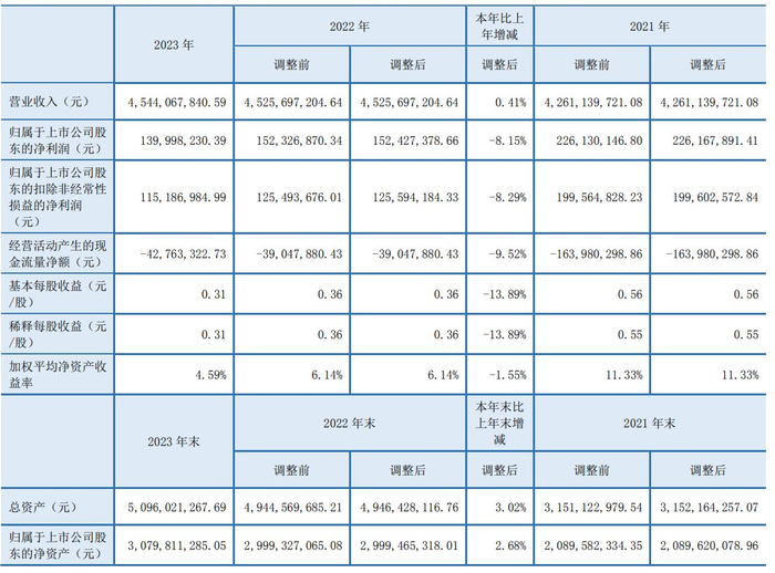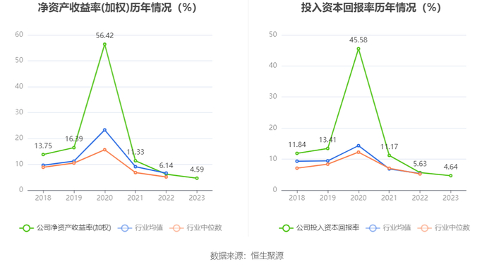数据显示,2023年公司加权平均净资产收益率为4.59%,较上年同期下降1.55个百分点;公司2023年投入资本回报率为4.64%,较上年同期下降0.99个百分点。