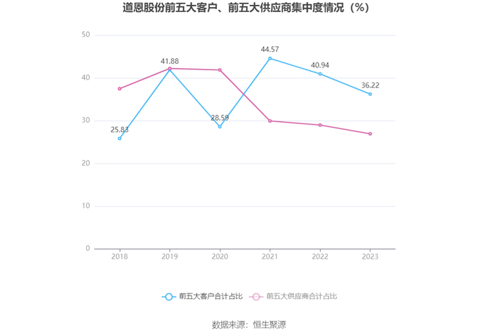 报告期内,公司前五大客户合计销售金额16.46亿元,占总销售金额比例为36.22%,公司前五名供应商合计采购金额10.32亿元,占年度采购总额比例为26.94%。