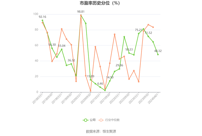 市盈率为负时,不显示当期分位数,会导致折线图中断。