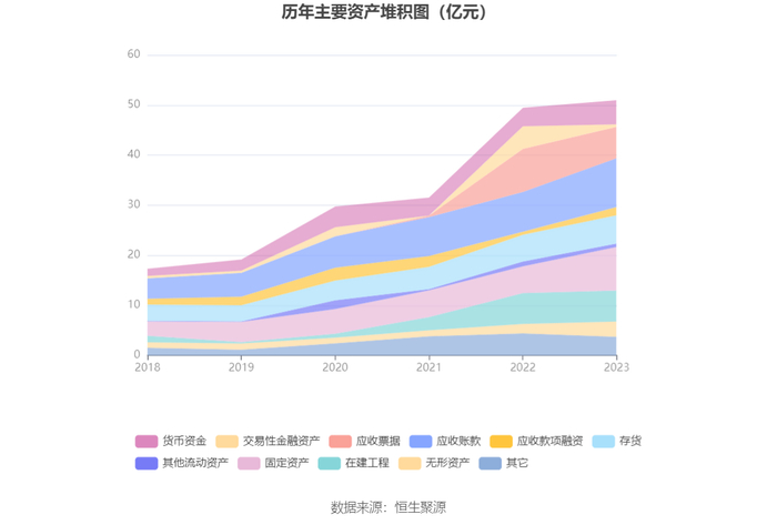 资产重大变化方面,截至2023年年末,公司交易性金融资产较上年末减少88.85%,占公司总资产比重下降8.14个百分点;固定资产较上年末增加62.23%,占公司总资产比重上升6.21个百分点;应收票据较上年末减少27.28%,占公司总资产比重下降5.11个百分点;应收账款较上年末增加23.14%,占公司总资产比重上升3.13个百分点。