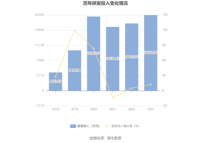 2023年全年,公司研发投入金额为1.85亿元,同比增长12.46%;研发投入占营业收入比例为4.08%,相比上年同期上升0.44个百分点。此外,公司全年研发投入资本化率为0。