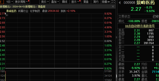 盘面上共19股跌停,其中医美概念股景峰医药一字跌停,跌停板封单39.18万手,最新A股市值跌破20亿元。