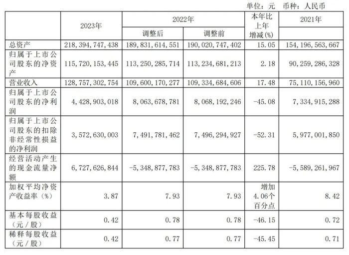 广汽集团2023年净利为44.29亿元,较上年同期的80.64亿元下降45%;扣非后净利为35.73亿元,较上年同期的74.92亿元下降52.31%。