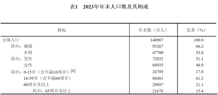 国家统计局公布的2023年数据显示,65岁以上人口占比已经高达15.4%。60岁人口占比高达21.1%。
