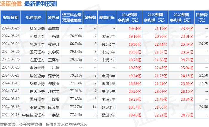 以下是详细的盈利预测信息: