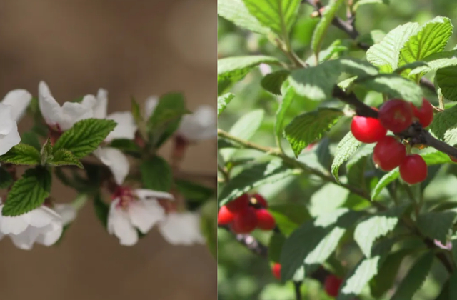 此外,喜欢野山的,在北京的西山上,还会见到一种乡土的樱桃属植物——毛樱桃,其全身有绒毛,小灌木,非常好认,果实红色,小指头肚那么大,可食,酸酸甜甜的。