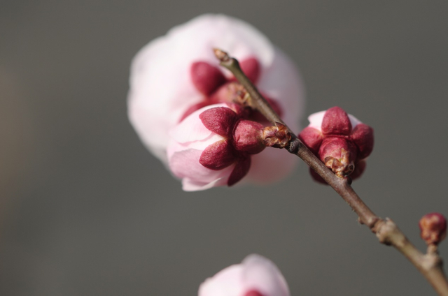 “墙角数枝梅,凌寒独自开。遥知不是雪,为有暗香来”,“梅须逊雪三分白,雪却输梅一段香”,古诗词中的梅花开放的情景在北方是看不到的,这都是南方的情况,但这不妨碍我们赏梅的心情,在北京梅花一般跟山桃、山杏前后脚开放,种类也没有南方多。梅花、山杏和杏比较难分,最主要的特性:梅花先花后叶,小枝绿色,常有枝刺,梅花有明显的香味,整体感觉更加端庄优雅。