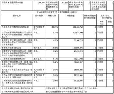 前十名股东较上期发生变化