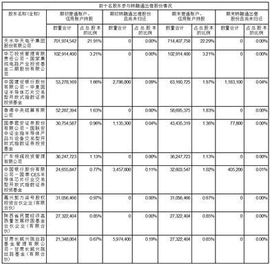 前十名股东参与转融通业务出借股份情况