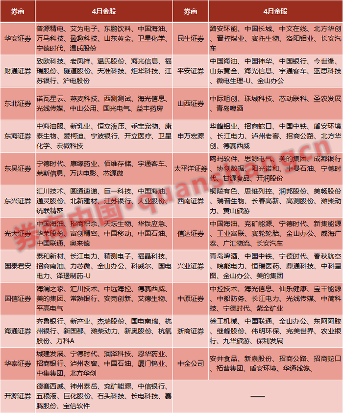 进入4月,新一期的金股名单也陆续出炉。