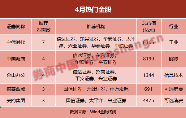 4月金股出炉, 宁德时代人气最高