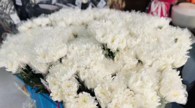 在位于琴桥附近的一品花行内,店里工作人员正忙着挑选鲜花、修剪枝叶、搭配包装。“清明前后,预定祭祀类鲜花的客户比较多,这几天就是最高峰了!每天都能卖出2000多包菊花,每包10支,按支算的话至少20000支。”店主闫先生告诉记者,尽管需求增大,但今年菊花价格整体较为平稳。