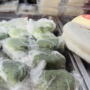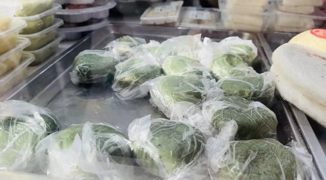在位于华严菜市场的老底子糕点店内,老板正手脚麻利地打包、收银。“我们的青团就2个口味——黄豆馅、黑芝麻馅,3元一个,仅青团每天就能卖2000个至3000个,还都是散卖的。这几天早上都是要排队买的。”