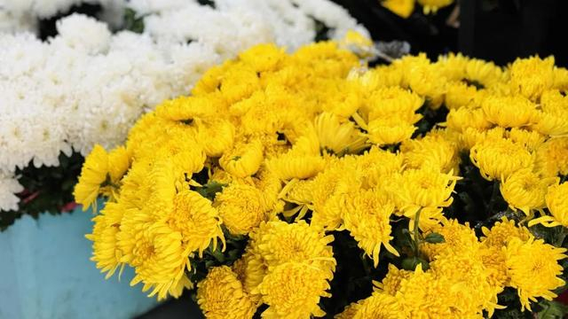 记者走访时看到,宁波街头不少花店将黄色、白色的菊花摆放在店门口,十分醒目。据悉,单枝菊花售价多在3-5元不等,除了散卖,还有各种以菊花为主角的花束,商家一般会搭配白百合、洋桔梗、马蹄莲等素色鲜切花混搭售卖,价格几十元到百元不等。