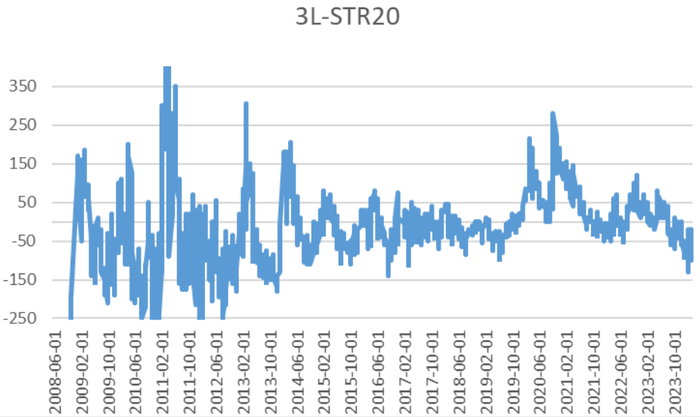 3L对泰国标胶的价差,维持在历史上偏低的位置。