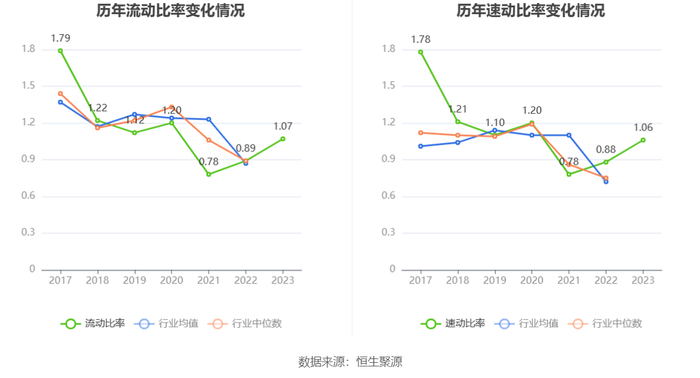 2023年,公司流动比率为1.07,速动比率为1.06。