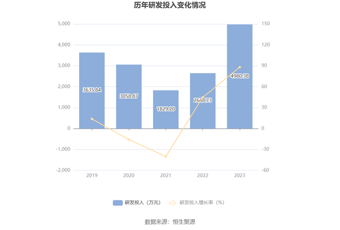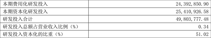2023年全年,公司研发投入金额为4980.38万元,同比增长88.03%;研发投入占营业收入比例为0.34%,相比上年同期上升0.10个百分点。此外,公司全年研发投入资本化率为51.02%。