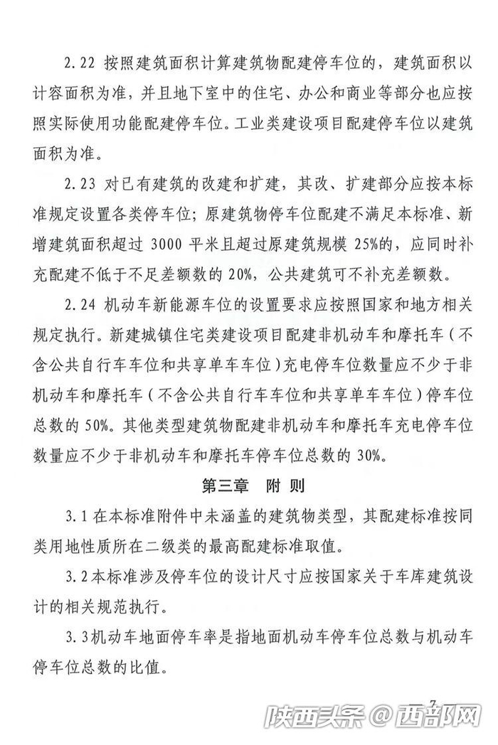 《西安市建设项目停车位配建标准(修编)》中第2.24条关于新建住宅对非机动车停车位配建的相关规定。