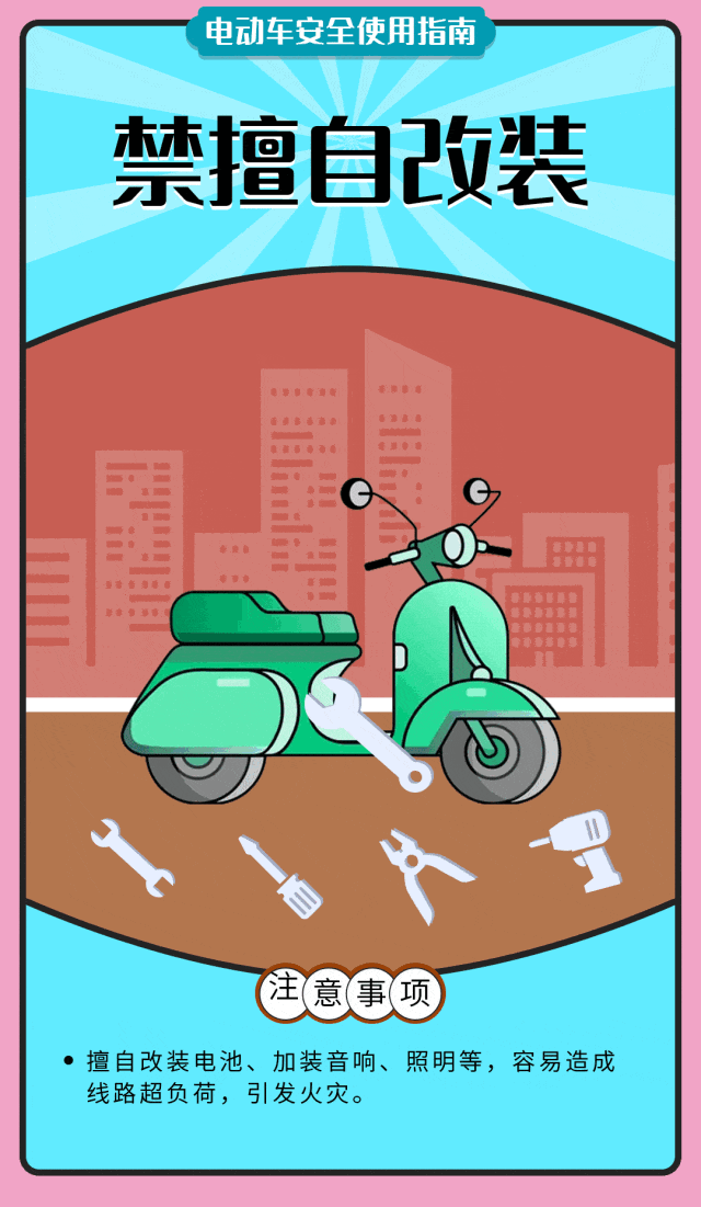 改电池、改时速、加装车篷、加装货架……电动自行车已逐步成为人们日常出行优选的代步工具,但“非法改装”的行为不可忽视,电动自行车“非法改装”到底有什么危害?什么是“非法改装”行为?在购买和使用电动自行车时,要注意什么?来看市公安局的解答↓