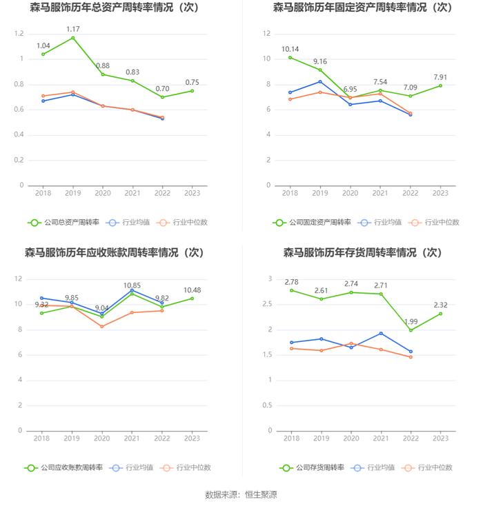 数据统计显示,森马服饰近三年营业总收入复合增长率为-3.51%,近三年净利润复合年增长率为11.66%。
