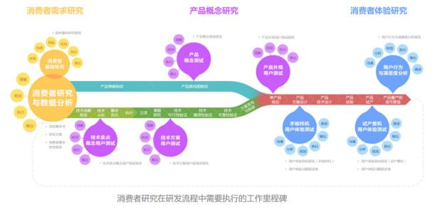 在概念产出前需要系统的消费者研究,输出各种消费者需求研究报告,形成消费者痛点需求库,进而产出产品概念或概念库,为产品策略、技术战略制定提供用户数据资源。