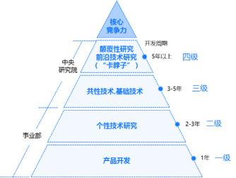 “四级研发体系”通过技术研究与产品开发在组织上的分离,确保有资源投入前瞻性的产品与技术布局,实现长期战略与短期经营的平衡。通常来说,技术开发具有较大的不确定性,基于IPD模式技术研究管理强调先做技术储备与攻关,再启动产品开发项目,降低技术风险,保证产品开发的计划性或产品上市日期的可预见性、可控性,促进重用策略,并有利于产品质量控制。