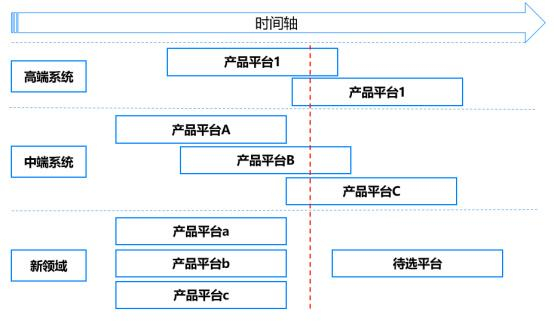 以整体产品平台规划的形式来表现,基于市场细分,从市场竞争、技术趋势、用户需求、人群细分等维度进行研究,结合现有平台,制定未来平台发展及淘汰的规划,显示所有现有产品平台的生命周期及预计的新平台的日程,表明产品平台间的重大鸿沟可能在哪里,以及何时必须开始开发新产品平台战略。