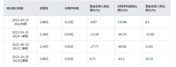 2023年三季报显示,建新股份总营收为1.88亿,归母净利润为0.02亿元,营收总收入同比增长6.73%,归属净利润同比增长-82.1%。