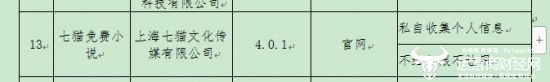 2020年5月15日,工信部发布《关于侵害用户权益行为的APP通报(2020年第一批)》,七猫免费小说官网存在“私自收集个人信息”“不给权限不让用”的问题;