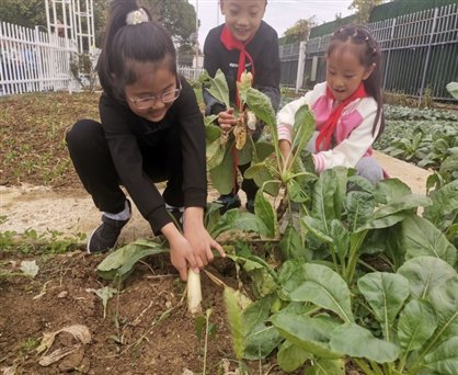 校内,学校开辟了“星星农场”校园劳动基地,让田间地头成为滋养学生身心的新课堂。校园采摘节上,孩子们合作摘下一颗颗金黄圆润的枇杷,收获色泽诱人的苋菜,郁郁葱葱的韭菜,用辛勤的汗水换来丰收的喜悦。