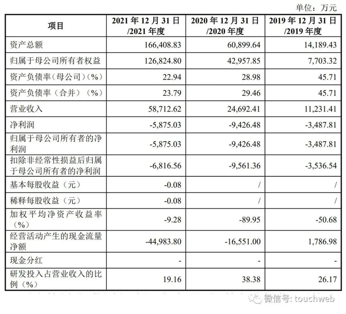 招股书显示,捷氢科技2019年、2020年、2021年营收分别为1.12亿元、2.47亿元、5.87亿元;净亏损分别为3487.8万元、9426.48万元、5875万元;扣非后净亏损分别为3536.5万元、9561万元、6816.56万元。