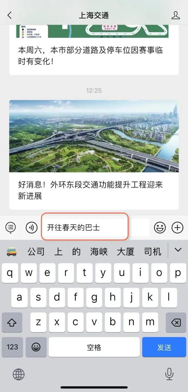 ② 在对话框内输入公交线、地铁、车站、渡口、马路等名称,点击“发送”按钮。