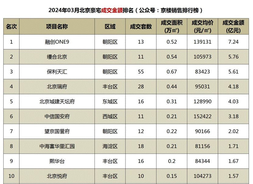 令人意外的是,即便是这样的市场环境下,位于东四环CBD核心区的融创ONE9项目,却逆势展现出了“当红不让”的气势,霸榜了北京楼市的销售排行榜。作为融创第9座“壹号院”,ONE9项目以6000万-1个亿的单套价格,取得了7.24亿元的销售业绩,成为今年3月高端住宅的销售冠军。