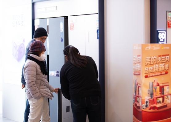 活动期间消费者在苏宁易购门店选购美的产品图源:苏宁易购蓝话筒公众号